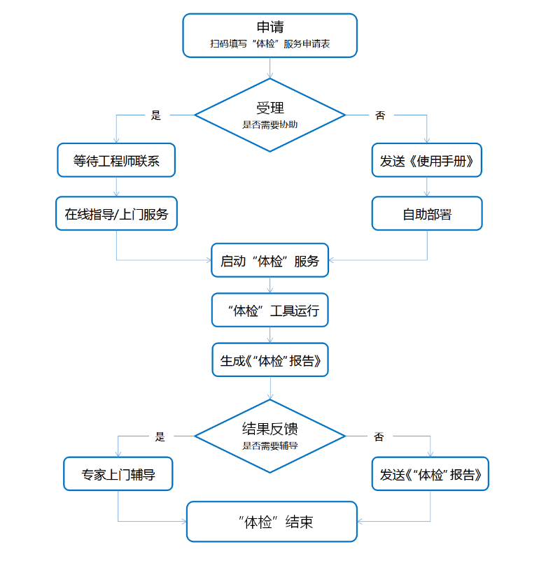 方式二:不具备技术能力的企业,可选择“IT助手辅助”方式,深圳市市场监管局收到“体检”申请后,将安排技术人员与企业进行联系,通过在线指导或上门服务的方式帮助企业安装“体检”工具。