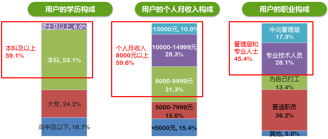 高学历、高收入、高/专职级成为中高端手机用户的整体特征。