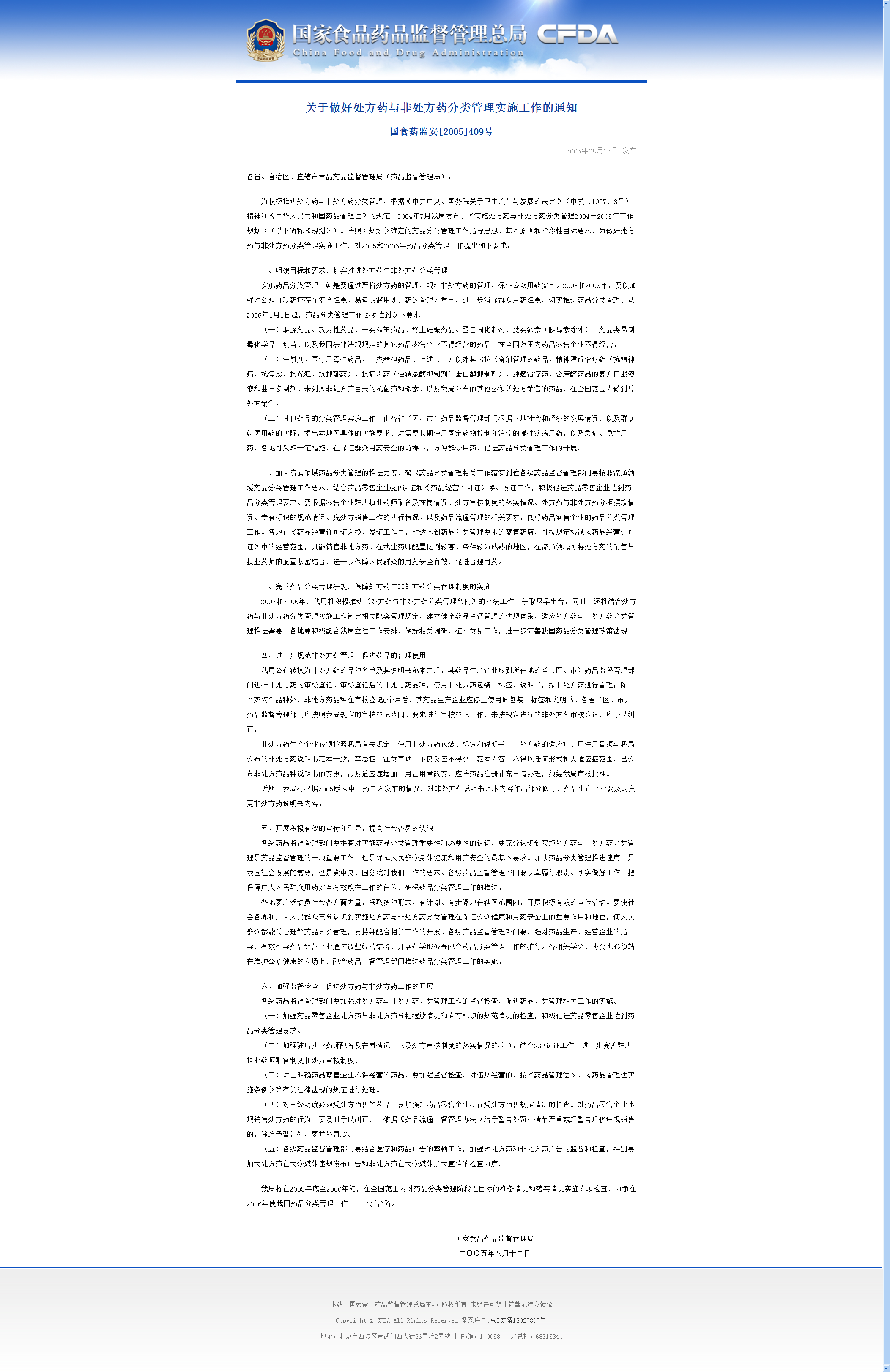 2.《关于做好处方药与非处方药分类管理实施工作的通知》(国食药监安〔2005〕409号)