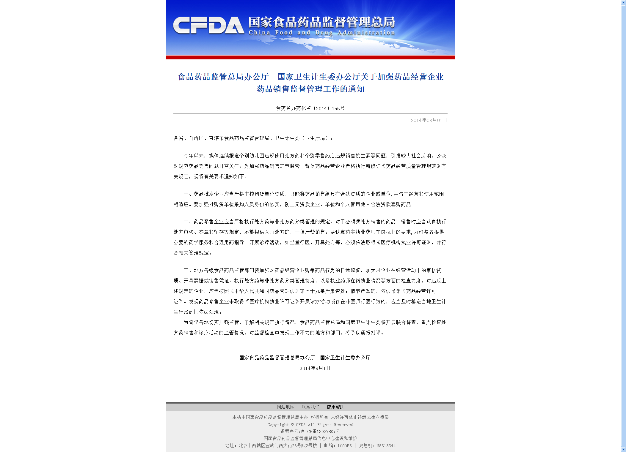 3.《关于加强药品经营企业药品销售监督管理工作的通知》(食药监办药化监〔2014〕156号)